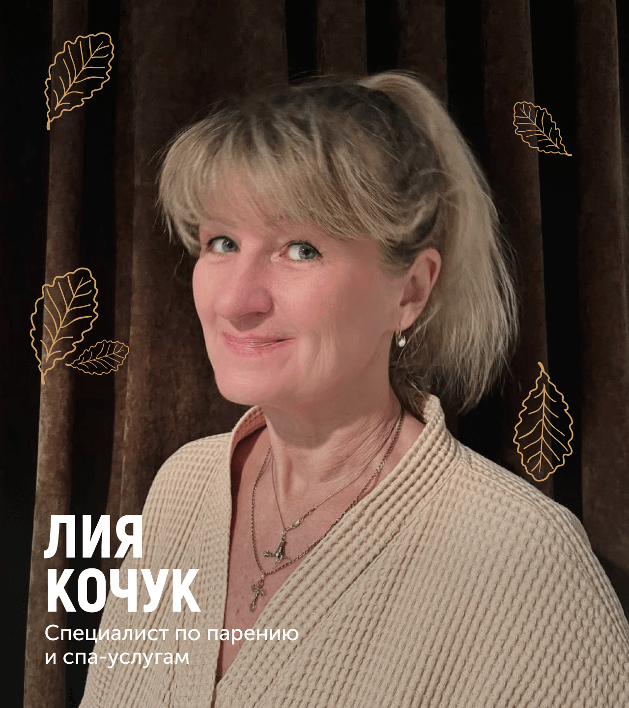 В стоимость услуги входят веник для дыхания на выбор, дубовые веники и простыня, которой специалист устилает полок для парения.